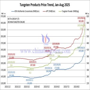 As a strategic metal known as the “industrial tooth,” tungsten prices have surged rapidly over the past two months. From 378 yuan per kilogram in early July, it surged to 580 yuan per kilogram by late August—a 53% increase. This explosive growth has not only shaken the market but also triggered a chain reaction across the entire industry chain. The reasons behind this price surge lie in the combined effects of supply-demand dynamics, policy adjustments, and international developments.